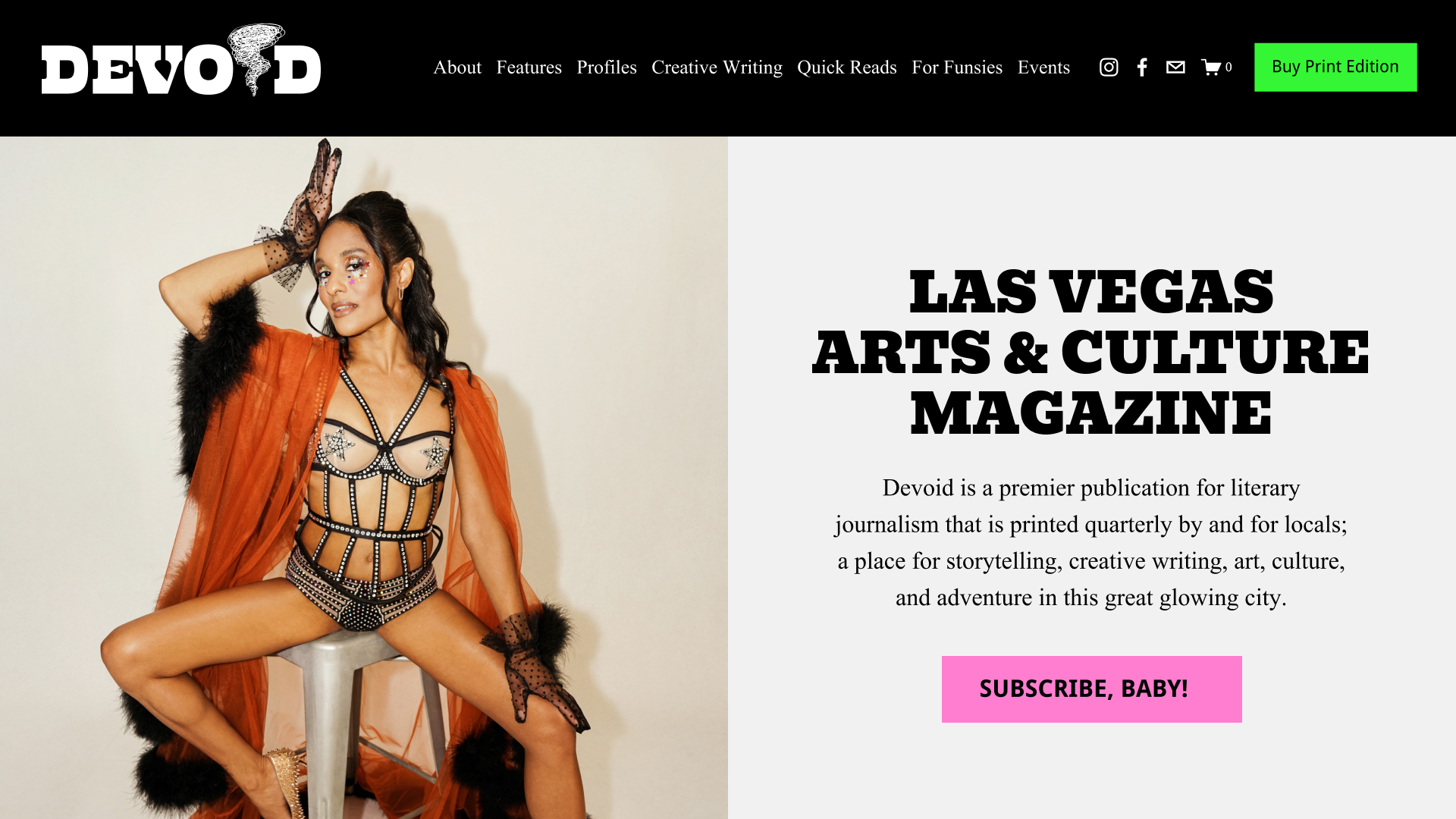 Devoid is a quarterly published cultural & arts magazine based in Las Vegas, Nevada. After joining the team, I headed Devoid’s rebrand through each new issue since issue 5, as well as their logo and website refresh. I handle the design process end-to-end, 44 pages front-to-back.